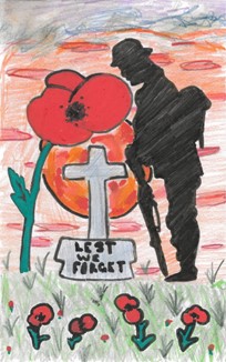 On Tuesday11th November, we held two minutes of silence in school at 11.00am to commemorate Remembrance Day followed by the ‘The Last Post’. I was accompanied by our Head Boy, Head Girl, their Deputies and some of our pupils at the Cenotaph in Broughton. We laid a wreath at the memorial on behalf of the school and Mr Shepherd played ‘The Last Post’. Jayden Rogerson (8C) produced the lovely artwork shown below for remembrance day,
