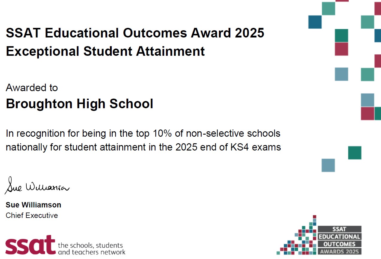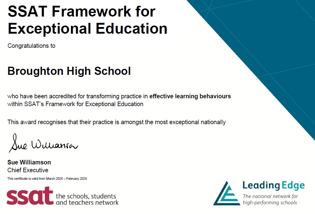 At Broughton High School, we are committed to ensuring that every pupil - regardless of background, starting point or learning need - accesses a challenging, ambitious curriculum and achieves highly. Our approach to adaptive teaching reflects our belief that excellence is achieved when teaching is responsive, inclusive and grounded in high expectations for all.